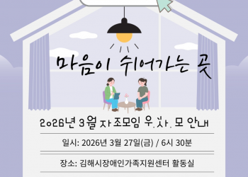안녕하세요^^김해시장애인가족지원센터입니다.오늘은 날이 참 포근하네요 : )가족지원센터와 함께하는 장애자녀미래설계교육을 안내..